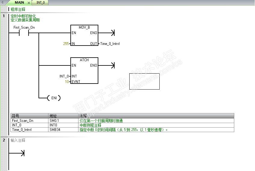 1,如果子程序只有一段,那么还是把它直接写在主程序中去好了。这个初始化定时中断参数的子程序,只有一段,这段直接写在主程序中,把前面的“always on”换成“first on”,不要为了结构化而结构化,简洁就是美,“less is more!”