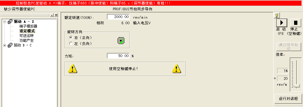 还有我在如下页面按(F9)启动,同样弹出此(缺少速度控制使能,功能中断)。