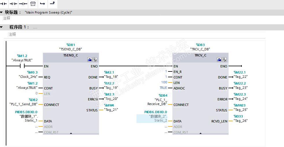 RT,plc端发送数据PC正常接收,使用的是TSEND_C指令,但pc发送数据是plc显示接收不了,使用TRCV_C指令,指令中的data参数有什么要求吗,我设置的是新建数据块中的string地址,