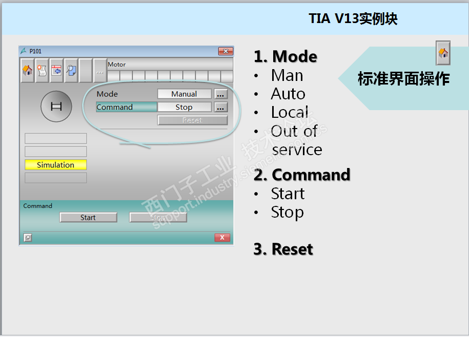 启动信号在联锁、组错误(电机跳脱、监视错误、外部故障)、本地模式、CPU初次扫描时自动复位。