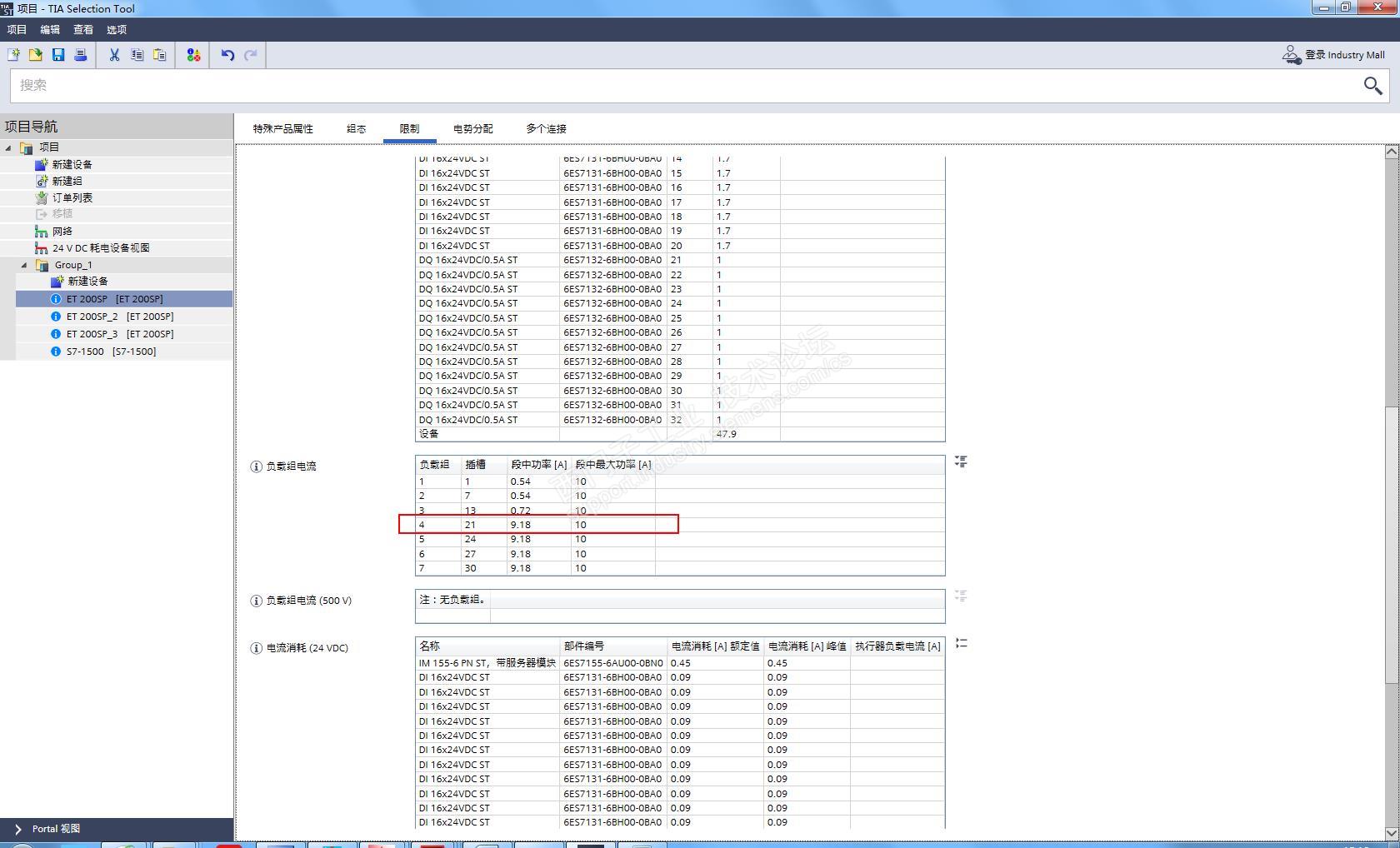 在TIA SELECTION TOOL软件选择工具中,组态了3个16DO的模块,就需要增加新的负载组,如下