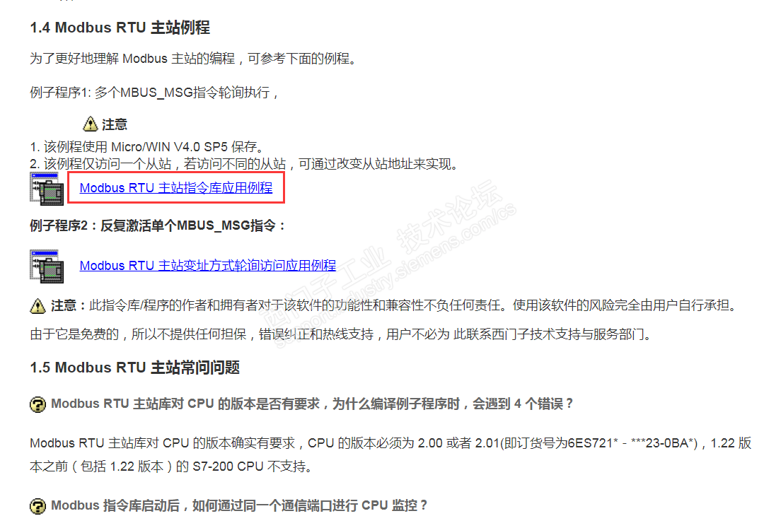 链接:http://www.ad.siemens.com.cn/service/article/S7-200/S7-200modbus/Default.aspx#slave