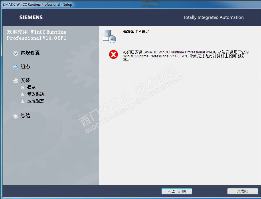 TIA V14 SP1 已安装了STEP7 V14SP1 professinal wincc V14SP1 professional ,现在安装WinCC V14 SP1 Professional RunTime时遇到如图的问题,各位大神看看。