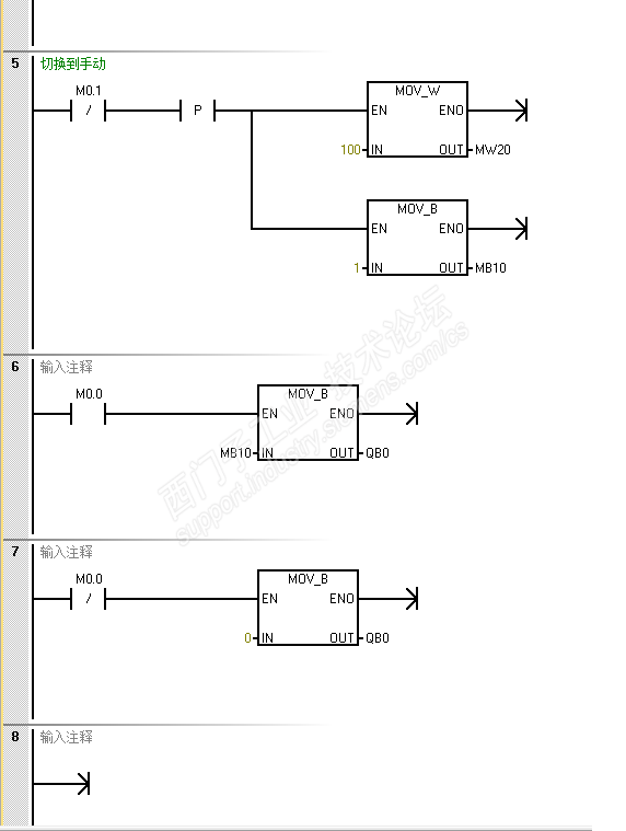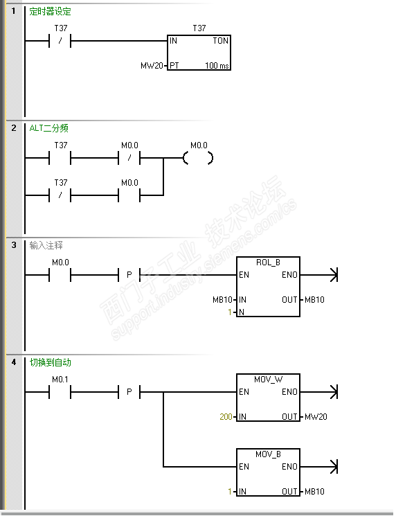 用一个定时器T37,MW20是定时器的设定值,手动和自动时切换定时值