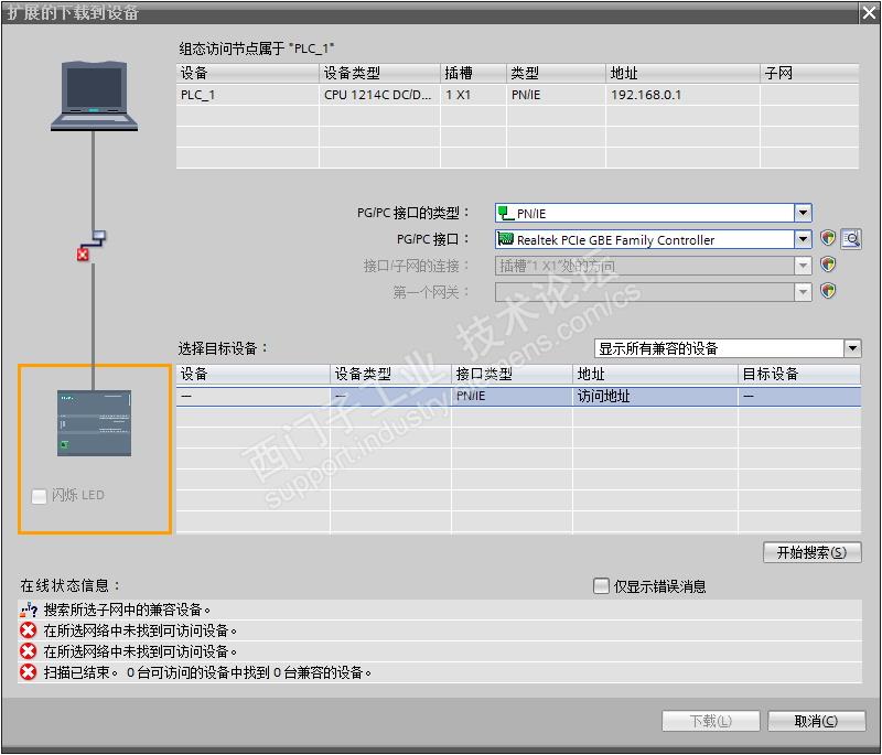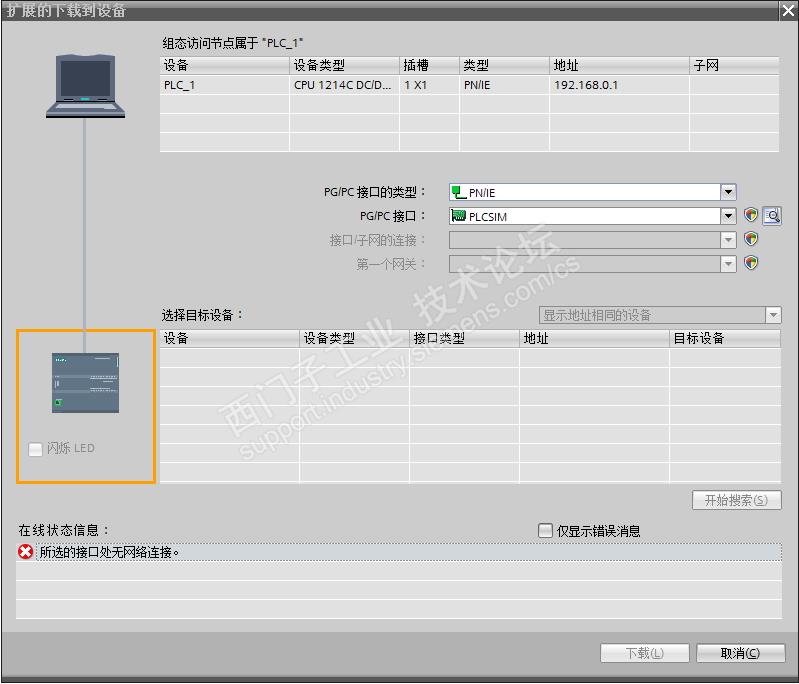 一,如果点击“保存项目-编译-下载”,PC/PG接口的下拉菜单里几个选项全部用过,还是仿真不了。