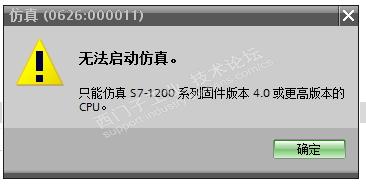 二,如果点击“保存项目-编译”,再点击TIA上的“仿真”控件,会弹出话框,说只能仿真固件4.0以上版本。不知道这个怎么解释?怎么解决?