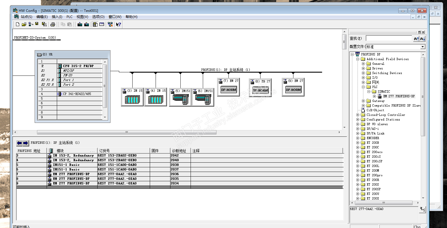 可以啊,点击DP线,变成黑色加粗状,然后拖过去就行,或者双击EM277PROFIBUE-DP就可以添加上去,如图: