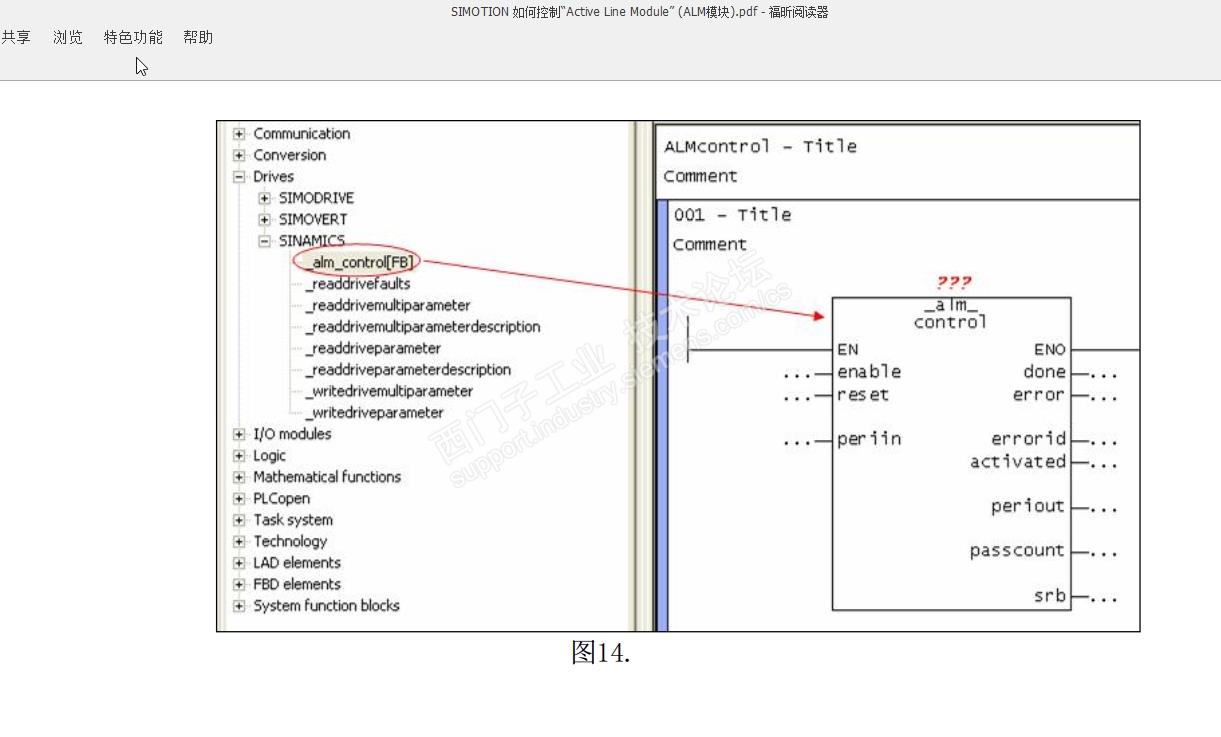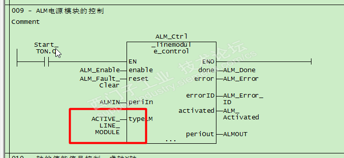 之前自己在网上找到了个资料:《SIMOTION 如何控制“Active Line Module” (ALM模块).pdf》,上来也是参考的这个。也看到了自己调用的块和pdf里面的不一样,但是有点疏忽了,