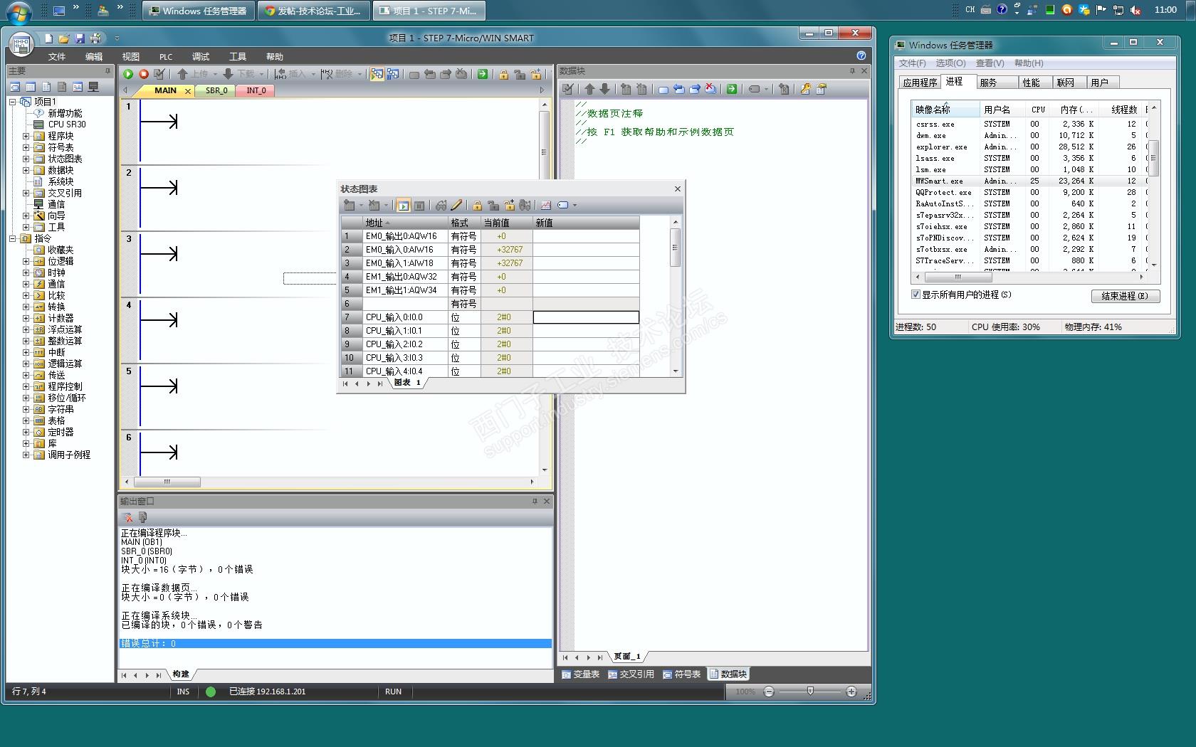 0、配置软件界面,把状态图表拖放到右侧保证可以同时显示几十个变量的状态;