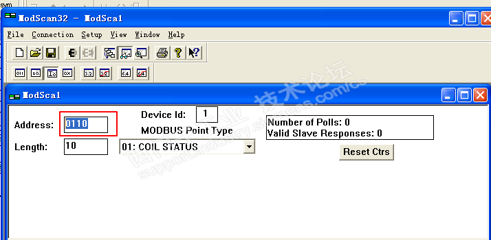 结果没有数据读出,开始检查PLC程序,当看到&VB110项的时候恍然大悟,原来做的通讯都是与仪表进行通讯,通讯地址都是固定死的,而与PLC通讯的地址是能够分配的,但是读取地址开始从40001开始,而我从40110开始读就读取不到数据。明白过来之后,重新设置ModScan的Address地址为1,