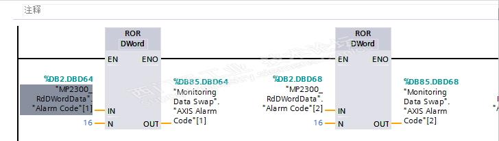 第一个引用的是ROR指令的in端。我不知道在这种情况下,Alarm Code[1]的信息从何而来?如果它没有信号,那么它怎么能让ROR指令起作用?