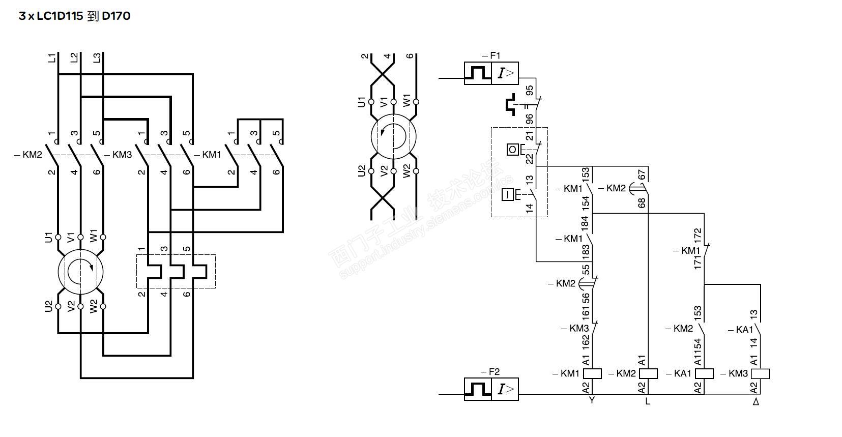 做的项目。星三角启动的,参考的施耐德的控制,为什么用了两个KM1的辅助触点。(183/184和154/153),没必要用两个,只保留(153/154)不就可以了。有知道为什么施耐德非要用两个的原因么?如图: