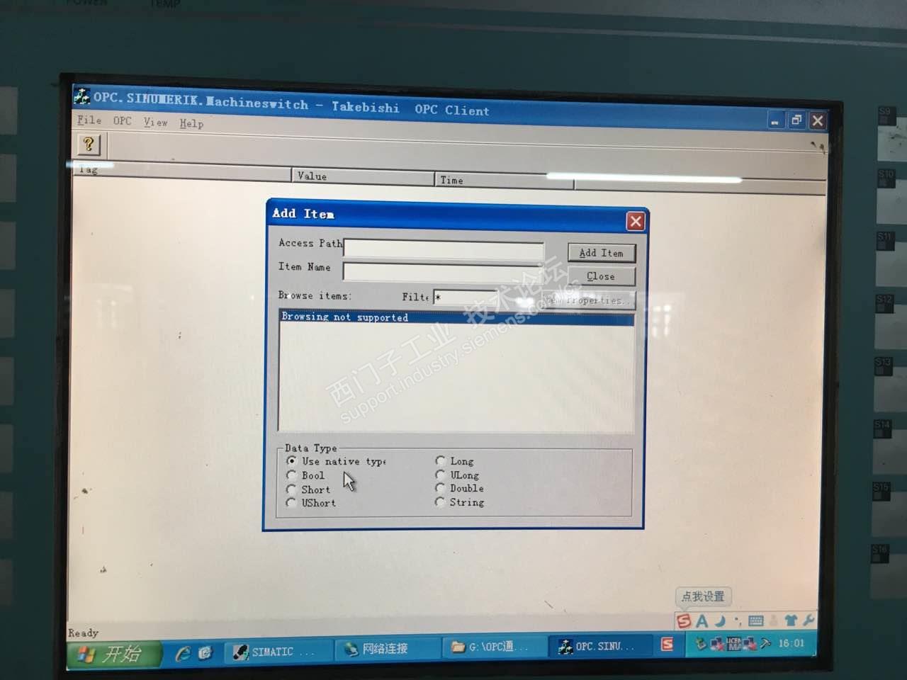 我配置完840D powerline 后,在系统里放了一个kepware的OPC client,能访问到系统自带的OPC server,为什么不能访问到里面的项节点,我要采集系统的运行参数,应该做如何配置才能读到OPC里面的节点数据呢?多谢