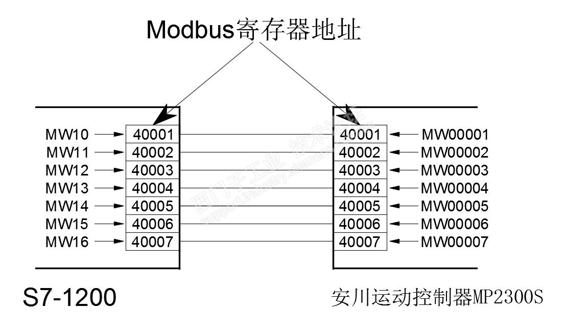 由于S7-1200、Modbus、MP2300S的地址格式不一样,所以,得有一个对应关系。我猜测如下: