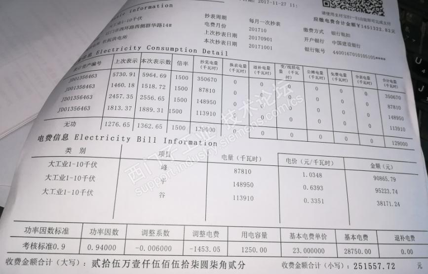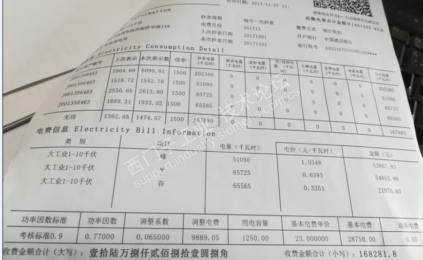 查看9月份10月份的有功电度和实际的生产的产能对照计算,的确偏少不少,但是10月份的无功功率因数才0.77,供电局倒扣9889元是有问题的。按照往常正常月份的电费单据,功率因数都是在0.95以上的,一般都会返2000元左右的无功调整费用。从这个也说明在高压C相缺相情况下,计量的无功功率是错误的。特要求供电局方面给予9月无功补偿500元,10月份无功补偿2000元及返回无功计量错误的扣除的9889元。