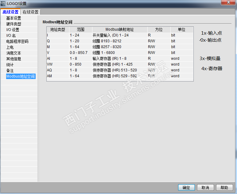 看了很多资料,有点搞不懂西门子LOGO!8FS4的Modbus地址空间的映射关系,因为对LOGO叶不太熟悉,所以瞎搞了一通,请高手指教。