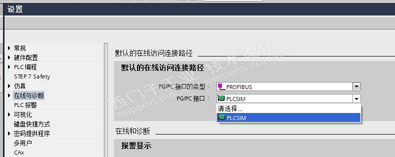 在TIA的设置上面只能够选择仿真器的PROFIBUS