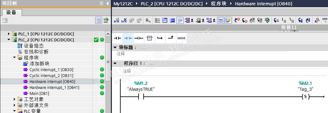 实验条件1 :OB40关联I0.6的上升沿,OB41关联I0.7的上升沿