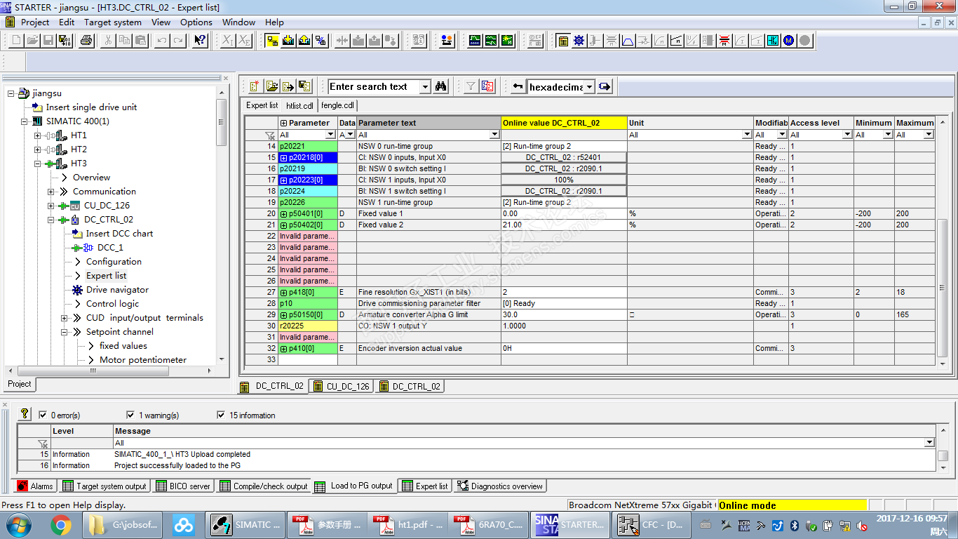 这个红色字体的就是明显没上载上来的参数。此时,需要再上载一次参数才完整。如下图所示: