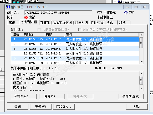 CPU315-2DP上SF红灯常亮,CPU故障信息见附件,是什么原因?