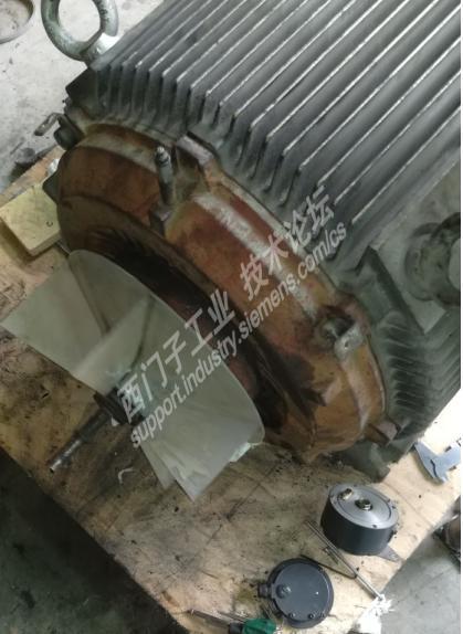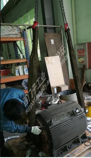 电机体积比较大且较重,使用吊机协助拆除了电机二端端盖。