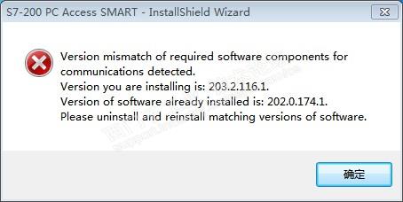 安装S7-200 PC Access SMART时报错,请教怎么解决