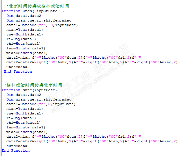 WINC查询归档数据时查询语句中需要用到查询记录的开始时间与结束时间,这两个时间需要转换成格林威治时间才能查询,查询后的结果如果用到时间数据,还要转换成北京时间,对于刚做WINCC归档数据项目的人来讲都可能会遇到这个问题,由于对格林威治时间构成及格式不了解,解决这个问题往往需要查好多资料花好长的时间,费时费力。为此我编写了两个函数分享给大家,代码不是很简洁但能用,已经经过了测试,也希望能有人提供更简单的方法。