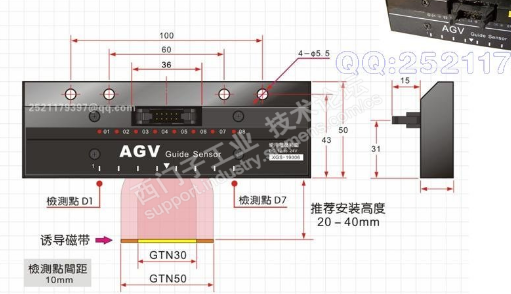 此传感器采用8位npn数字开关量输出,均匀分布,点距10mm,检测范围0-55mm,诱导词条采用30mm宽