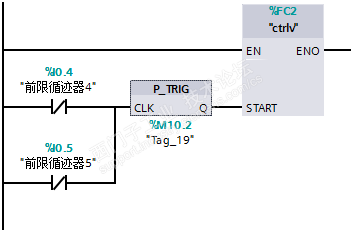 检测到前地标传感器的中间两个传感器有一个不通时调用一次该fc块!