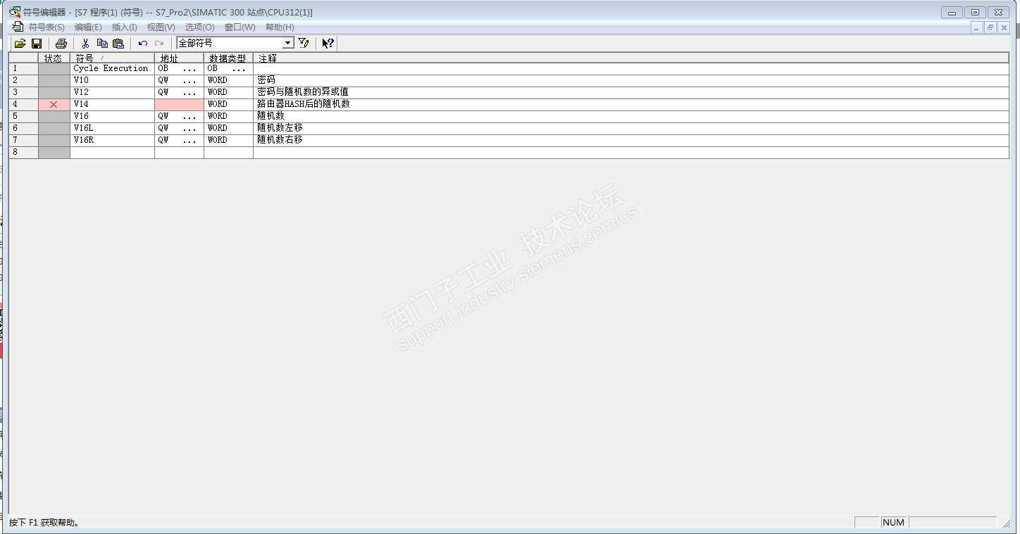 初次使用STEP7,不知道符号编辑器里面要增加一个DWORD的变量地址应该输入什么。WORD是QW或者IW已查到。知道的大神麻烦解释一下,可以的话可以把各种变量对应的地址发我一下。