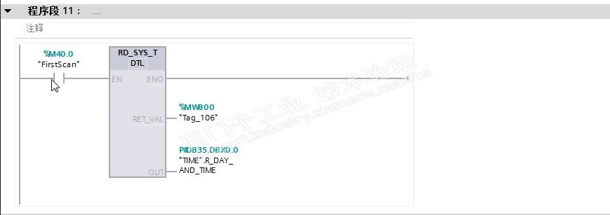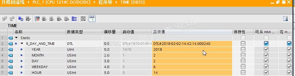2:用读取系统日期时间,RD_SYS_T 数据类型DTL,放入一个DB块数据类型被DTL的存储区内