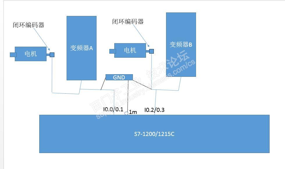 如下图片显示,两台变频器(变频器A,变频器B)做闭环控制,编码器接入变频器的同时也分多一路引入PLC,PLC的DI的M端使用变频器的自带的编码器卡的GND,现在的问题是,有两台变频器,CPU自带的DI只有一个M端,这样就涉及到要把两台变频器的编码器信号的公共端(GND)并入到CPU上的DI的M端,现在的问题是不知道两台变频器(就意味着不同电源的编码器信号)的公共端引入到同一个DI模板上有没有问题?会不会带来干扰问题?如果在每个变频器的编码器卡的GND加一个二极管隔离会不会到一点?因为1200只支持CPU的DI进行高速计数器。并且14个DI只有一个M端,而我的应用是把两个不同电源的编码器接入CPU的高速计数器。