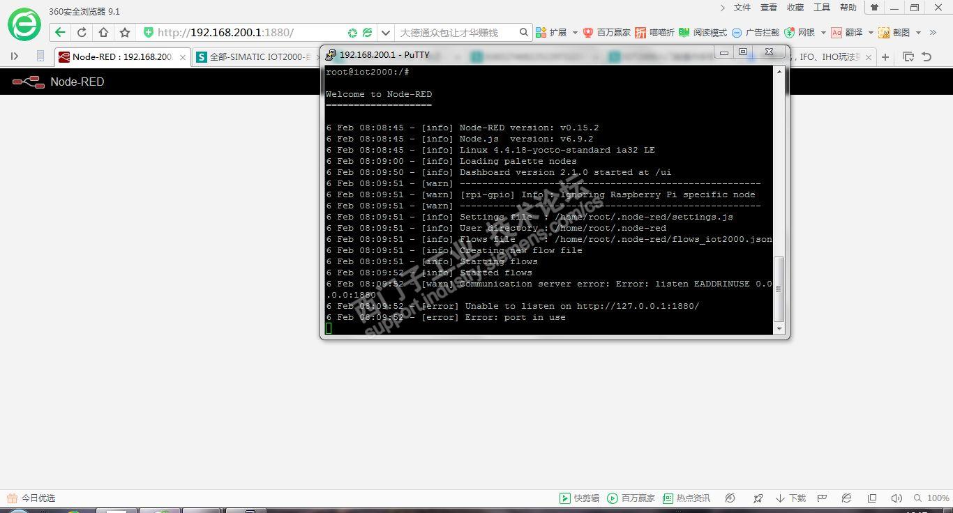 PUTTY里链接服务器ERROR,然后在IE中打开Node-RED,就只剩个白板。