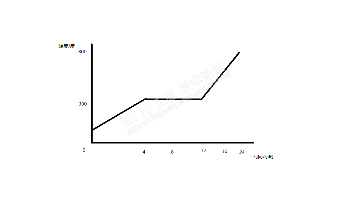 下图是一个温升时间表 在规定时间内达到相应温度并保温一段时间后升到指定温度 升温条件是通过PLC输出一个4-20MA的信号控制1个燃烧器的阀门开度来控制火焰的大小 通过燃烧升温