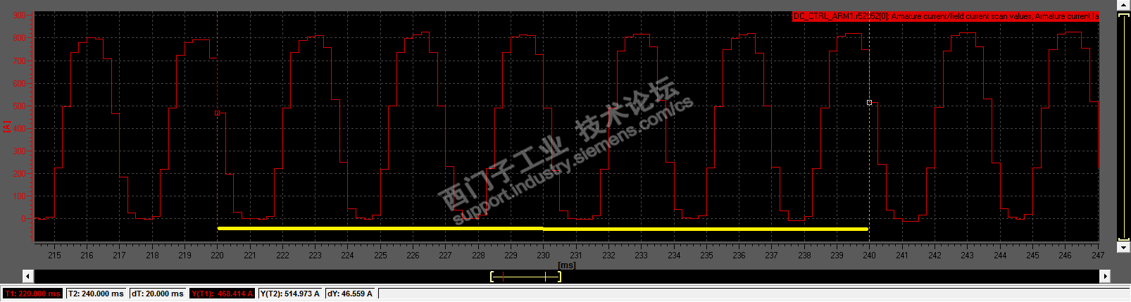 以下是副井从装置的实际电流波形(黄色是一个周期)