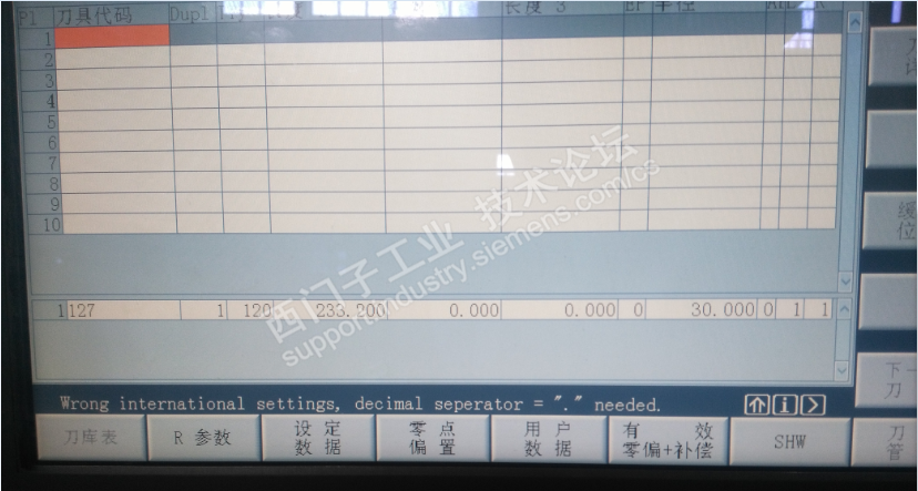 上图为按“新刀具”后死机,新建刀具界面呼不出来。重启后按“刀具管理”,下方有“3343”提示并有“Wrong international setting,decimal seperator=".”needed”