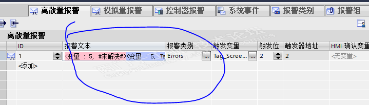 在离散量报警文本里面,插入变量域报错变红