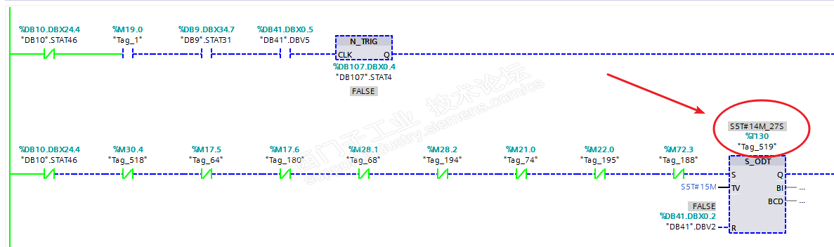 另外关于SR触发器的问题,确实是显示的问题,实际上导通了的。通过下图中的定时器就可以看出,定时器开始计时,说明定时器前面的条件已经满足了的。该定时器我换成TON也是同样的效果。