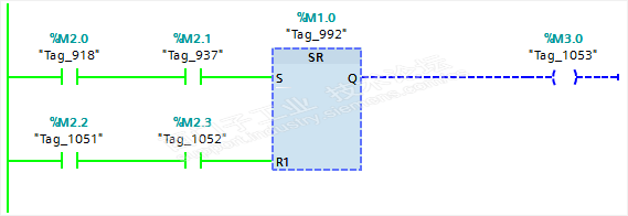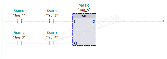 下图是在V14中试验的,当SR触发器的S端条件不满足,R端条件满足时,触发器显示的没有被复位,实际上已经复位。只是显示不正常。