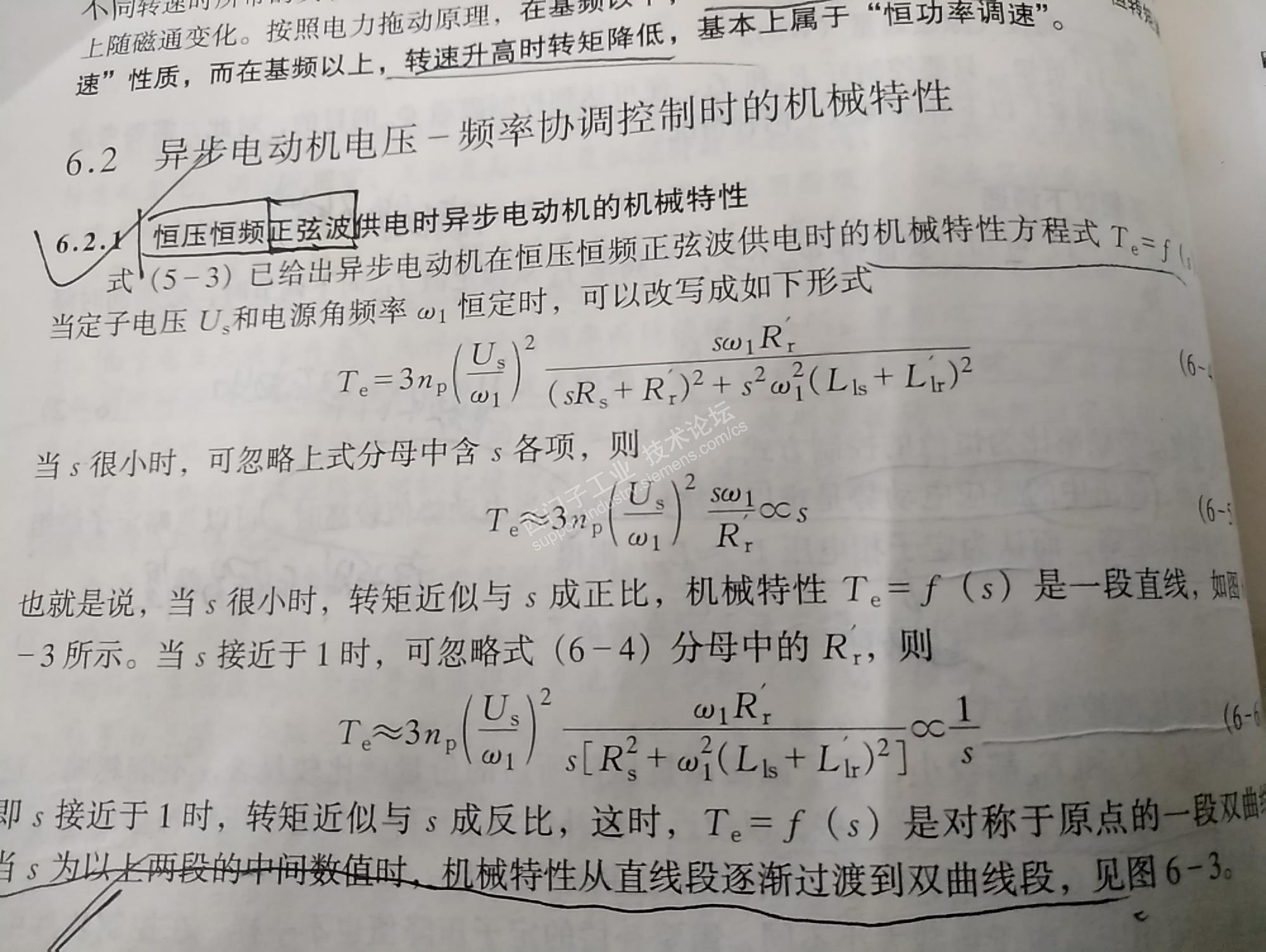 这个是恒压和恒频下的电机机械特性曲线。变压变频的情况要稍微复杂一些。我说不清了,你自己去看书吧。推导出来的话基本上就是一条条平行的曲线。