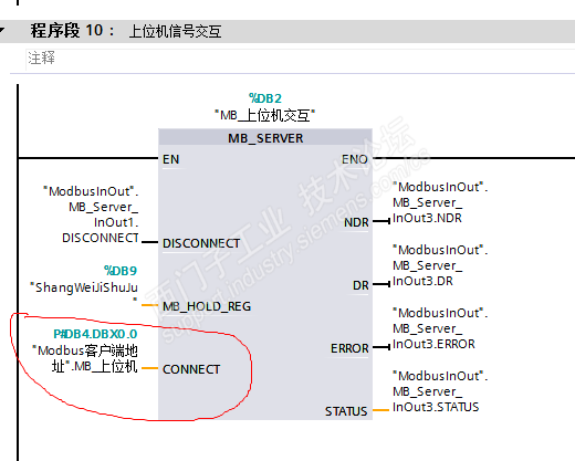 前期测试工具 Modbus Poll,刚开始系统报错也不懂。完全是照搬同事的,结果还是出了问题。刚开始以为是测试工具 Modbus Poll有问题,因为网上下载的不一定能用。其实这个软件也不懂用,尴尬!!!搞搞阵了一上午,又是找帮助、论坛、视频资料。实在不行了请同事出马,结果发现是MB_SERVER指令中的CONNECT的硬件标识符没有写和地址重复了(附图说明)。改过来后就可以通讯成功了,现在分享出来希望对像我这样不懂的一些帮助。
