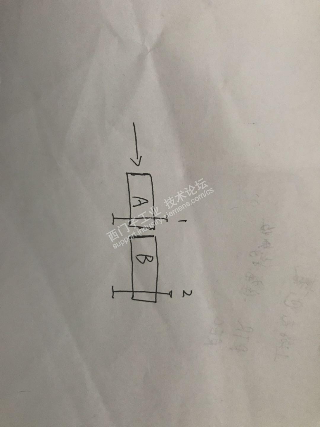 有两台输送机A和B,运动方向A到B,上面有两个光电传感器1和2,如何做上面包裹的数据追踪(Piece lost和Piece found、Piece ok),A会因拉开包裹距离停止。