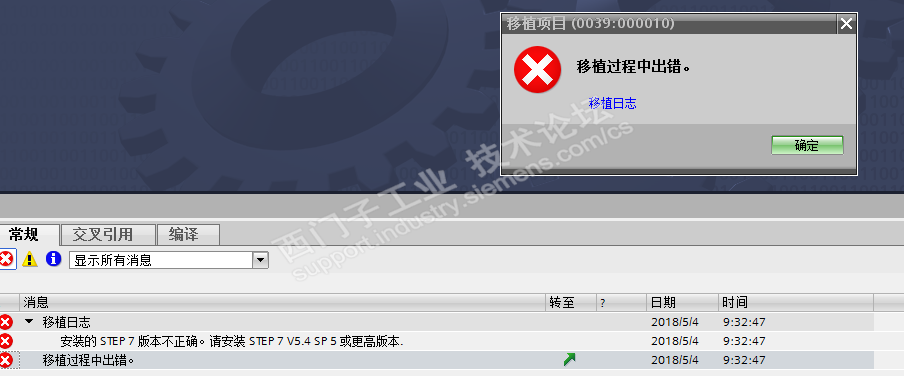 将原来用Step7 5.5 SP4做的项目移植到博图中,移植了几次都失败,后来在Step7中新建空项目,还是移植失败,提示Step7版本不对,要求安装STEP7 5.4或更高的版本,现在都5.5了还要多高的版本,不知道哪里出了问题。