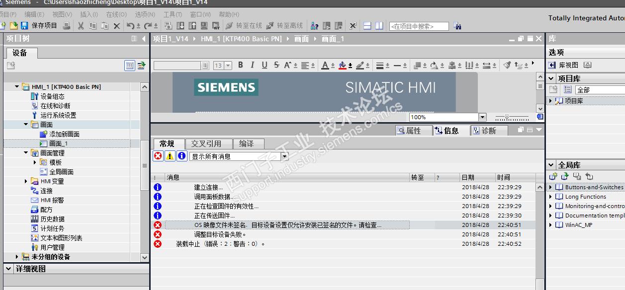 博图HMI下载失败,之前用V14SP1下载的,现在用V14下载,固件版本下载报错