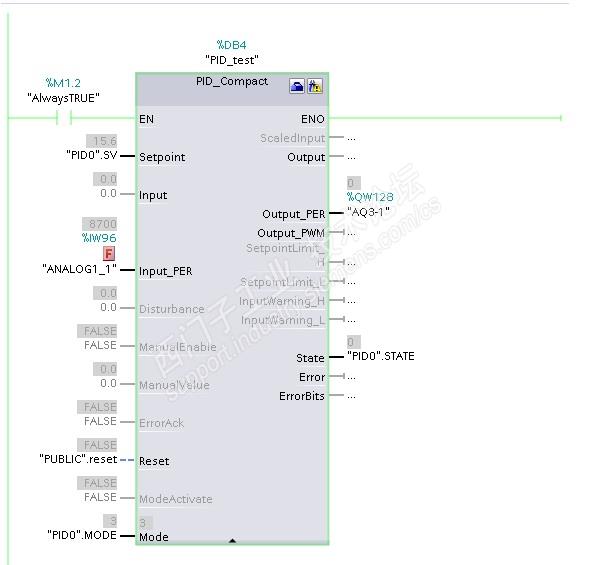 刚开始用1200作项目。 用到PID功能。 软件里面的PID指令组态好以后,state始终显示0. 用的TIA v13,仿真软件调试的