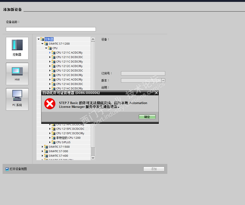 安装过程没出现别的问题,就是打开准备使用的时候这样子了,现在选择不了PLC和HMI的型号,求大神解答