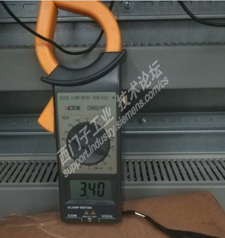 接入稳压电源后,钳形表卡出的单项电流是3.4A,而且在回参后有一段很快速的升高,如果显示到4A,A-Q03断路器跳脱。