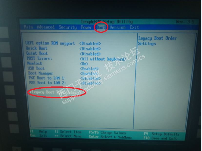 按左右键先选择BOOT,在按上下选择Legacy boot type order选择回车
