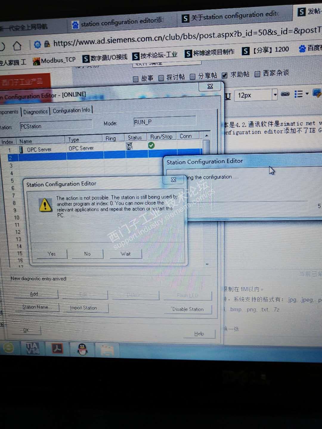 博图用的是v14 sp1.1200cpu版本是4.2.通讯软件是simatic net v13sp1,按照资料上的组态步骤,到了组态pc station时候,再station configuration editor添加不了IE General,会有提示,由于是初学者不太懂,请大神帮帮忙