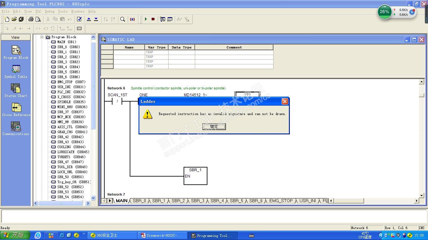 为什么在programs toolplc802中不能调用spindle这样的子程序,我把原程序中的这个子程序调用删了,再重新在原来的地方调用它,软件就报下面这样的错了,不知道是什么原因?